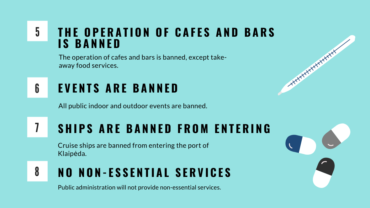# QUARANTINE IN LITHUANIA: CLOSING BORDERS FOR FOREIGNERS Just a few weeks ago a significant percentage of Lithuanians felt a bit skeptical about the danger of the so-called coronavirus. The situation has been changing quickly as from time to time new coronavirus infection cases in Lithuania were identified. The situation here is way better than in other countries surrounding us like Latvia, Poland, etc. However, on the 14th of March, the government announced the coronavirus-related quarantine. So far we have 9 official cases of coronavirus infections, but there might be way more unidentified ones. As far as I know, all infected people came back from Italy and other countries in Southern Europe. At least one case has been identified in Klaipeda, which is a city I currently live in with my wife and daughter. According to some sources, grocery stores are counting ten times more sales than usual. Grocery stores and pharmacies are the only institutions that will be allowed to function normally. According to [Lrt.lt](https://www.lrt.lt/en/news-in-english/19/1151486/lithuania-calls-nationwide-quarantine-shutting-non-essential-shops-and-closing-border-to-foreigners), catering establishments will be banned, excluding the possibility to provide takeaway food services. Are there any other official restrictions? Well, yes. I will share some of them and I am almost sure that Travelers who were preparing for their trip to Lithuania will understand why this kind of plan should be postponed.